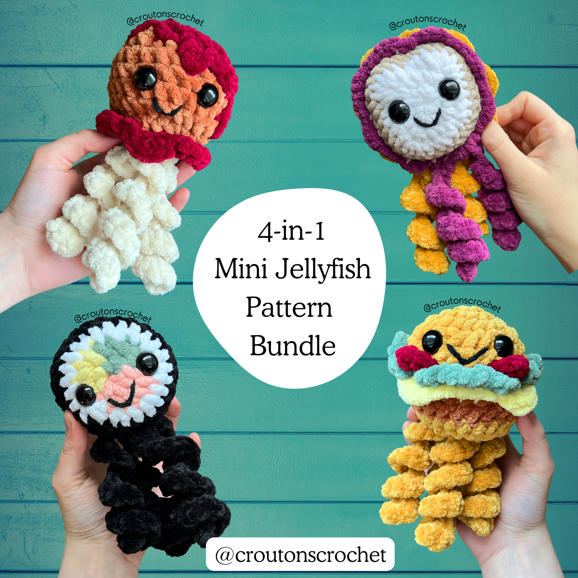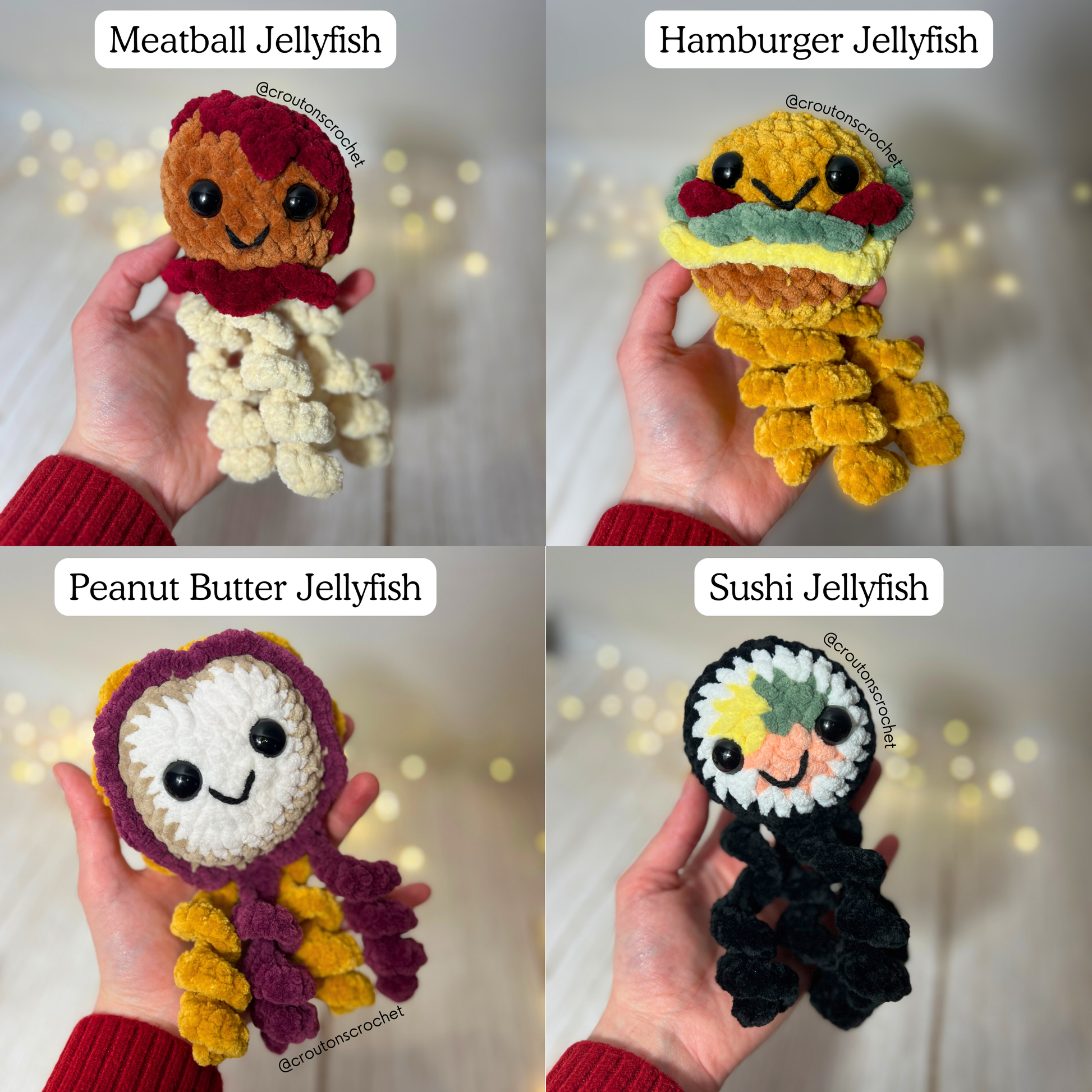 Mini Food Jellyfish Crochet Pattern Bundle | 4-in-1 Peanut Butter Jellyfish, Meatball Jellyfish, Hamburger Jellyfish, Sushi Jellyfish [PDF FILE]
