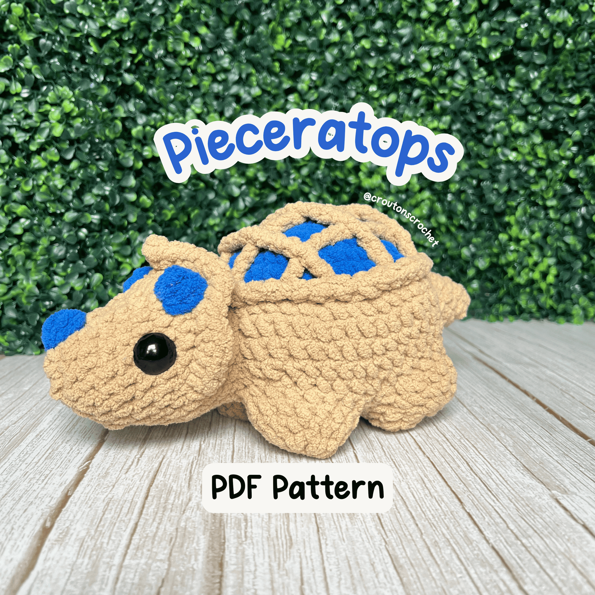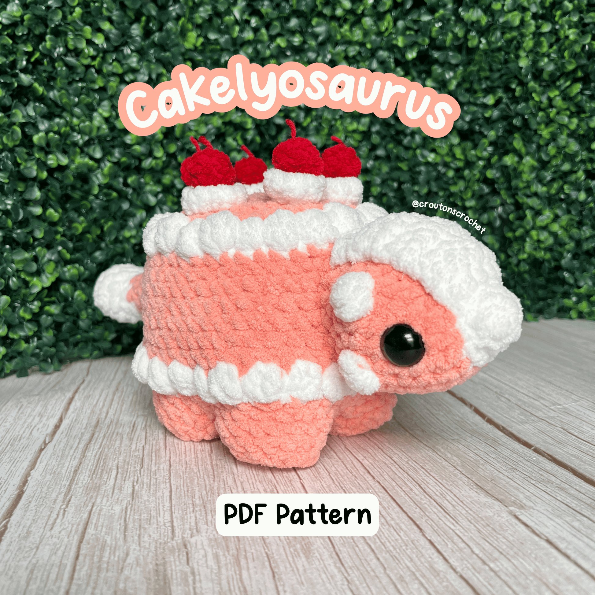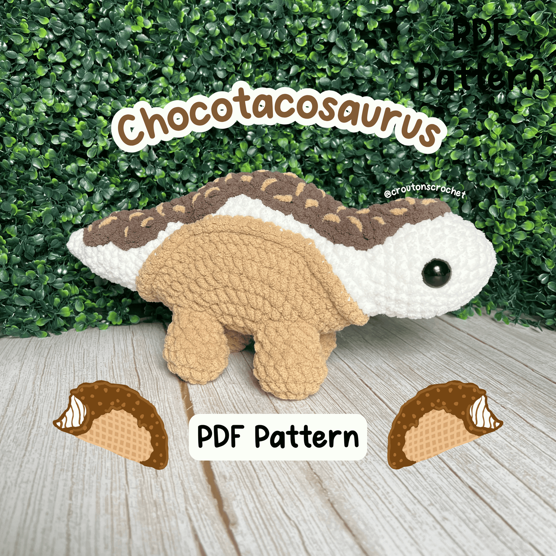 This bundle includes patterns for the Cakelyosaurus (Anklyosaurus Cake), Pieceratops (Triceratops Pie), & Chocotacosaurus (Stegosaurus Choco Taco). Also includes Printer-Friendly versions of each crochet pattern.