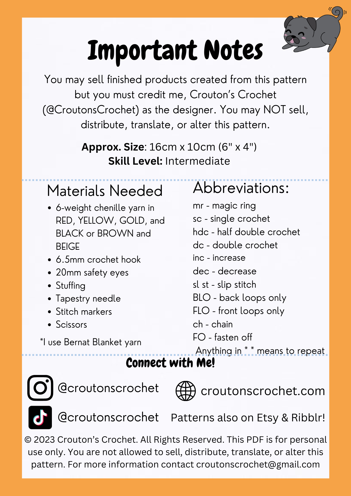 Please do not copy or redistribute any part of this pattern as your own. You may sell finished products made using this pattern but you must credit me @croutonscrochet on Instagram or croutonscrochet@gmail.com